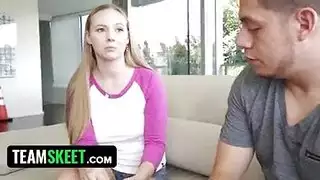 تستخدم ربة منزل شقراء قدمها الناعمة لتشغيل زوجها الذي يراقبها المتشددين