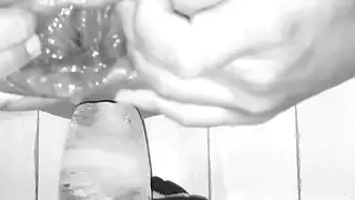 المراهق الساخن لديه هزة الجماع الشديدة مع الألعاب أثناء الاستمناء على كاميرا الويب