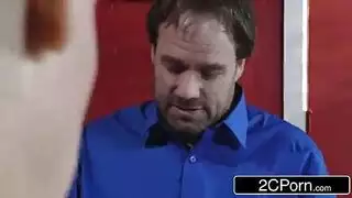 نادلة مفلس وأحد الرجال من زملائها يدفعون ثمن المشروبات في النادي الإباحية